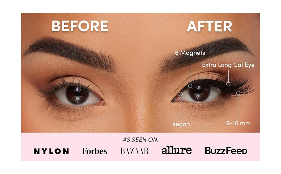 Apply a thin layer of magnetic eyeliner along your lash line and allow it to dry completely. Gently place the lashes on top of the liner and adjust for a perfect fit. To remove, simply peel off the lashes and clean them for your next use.
